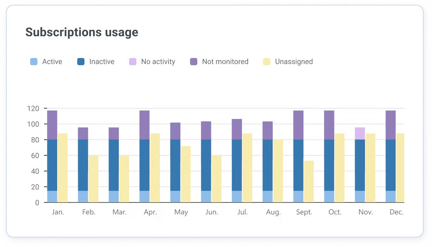 Stop paying for more than you need by comparing your paid licenses to actual usage and make informed decisions to optimize your spend. Get the data you need to eliminate unused software, downgrade premium tiers, reallocate licenses and get the best renewal deal.