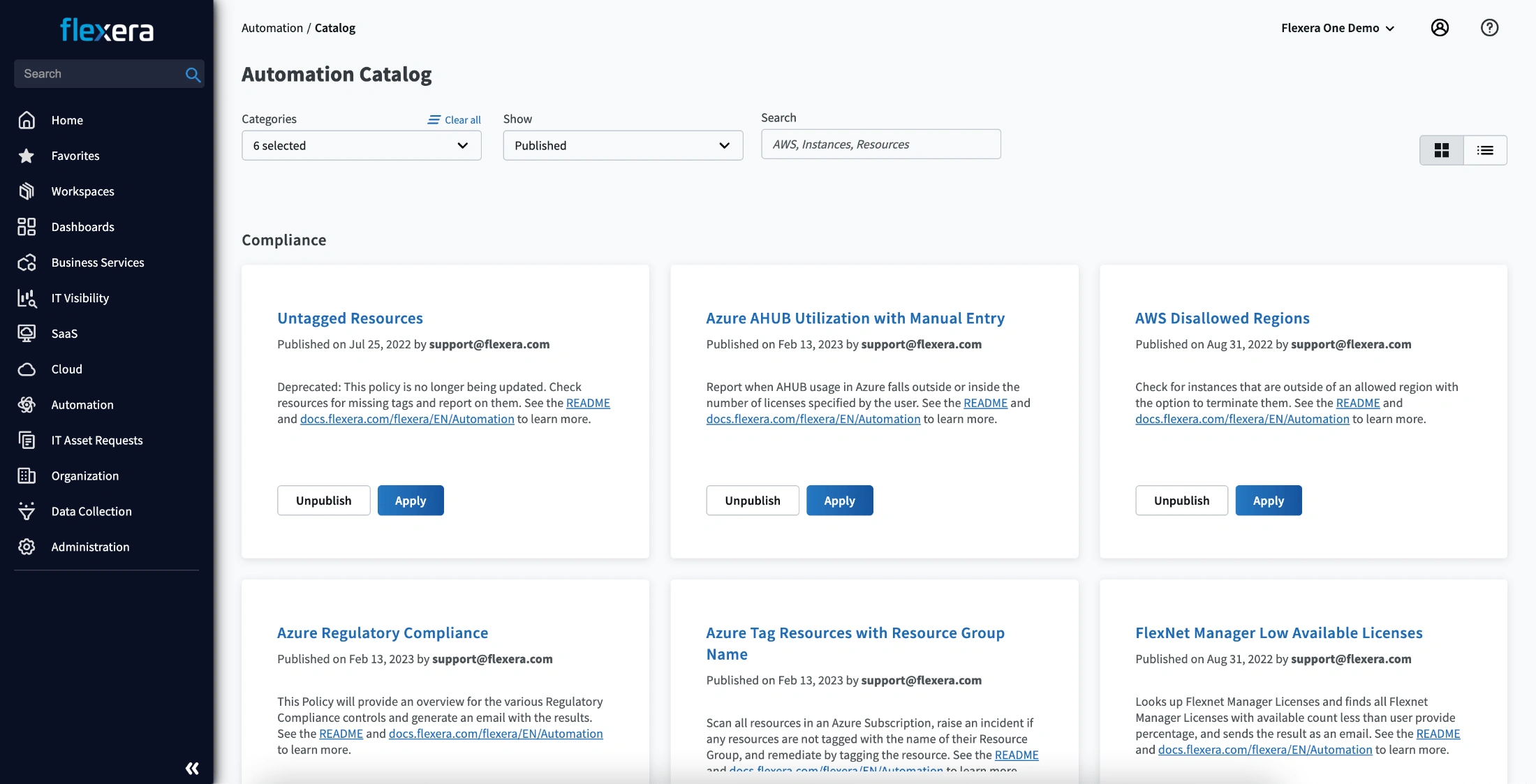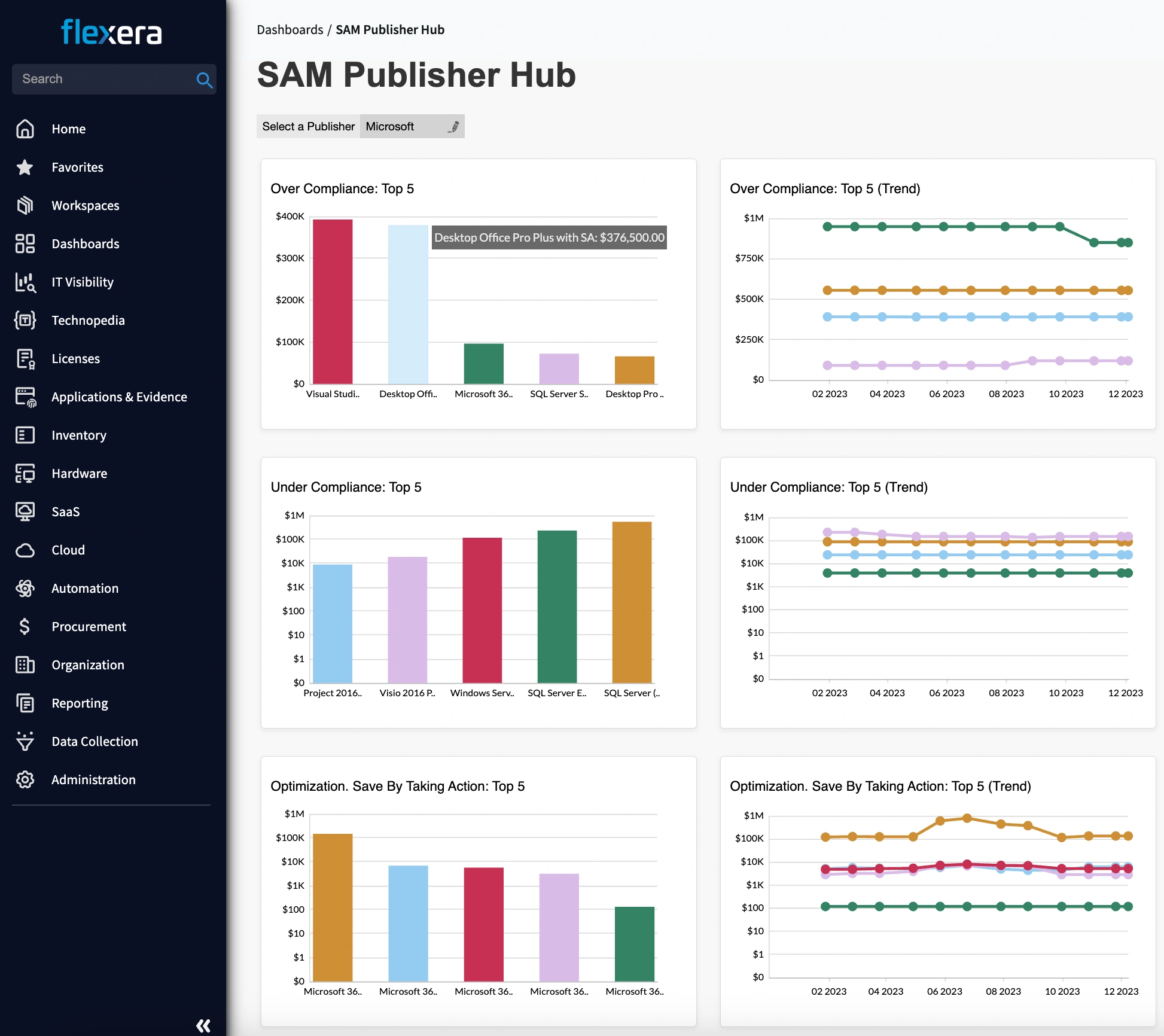 Flexera One is a comprehensive SaaS platform. It provides IT visibility, IT asset management, cloud migration and modernization, and cloud cost optimization capabilities. Flexera One helps organizations manage and optimize their complex hybrid IT environments, from on-premises to SaaS to cloud.